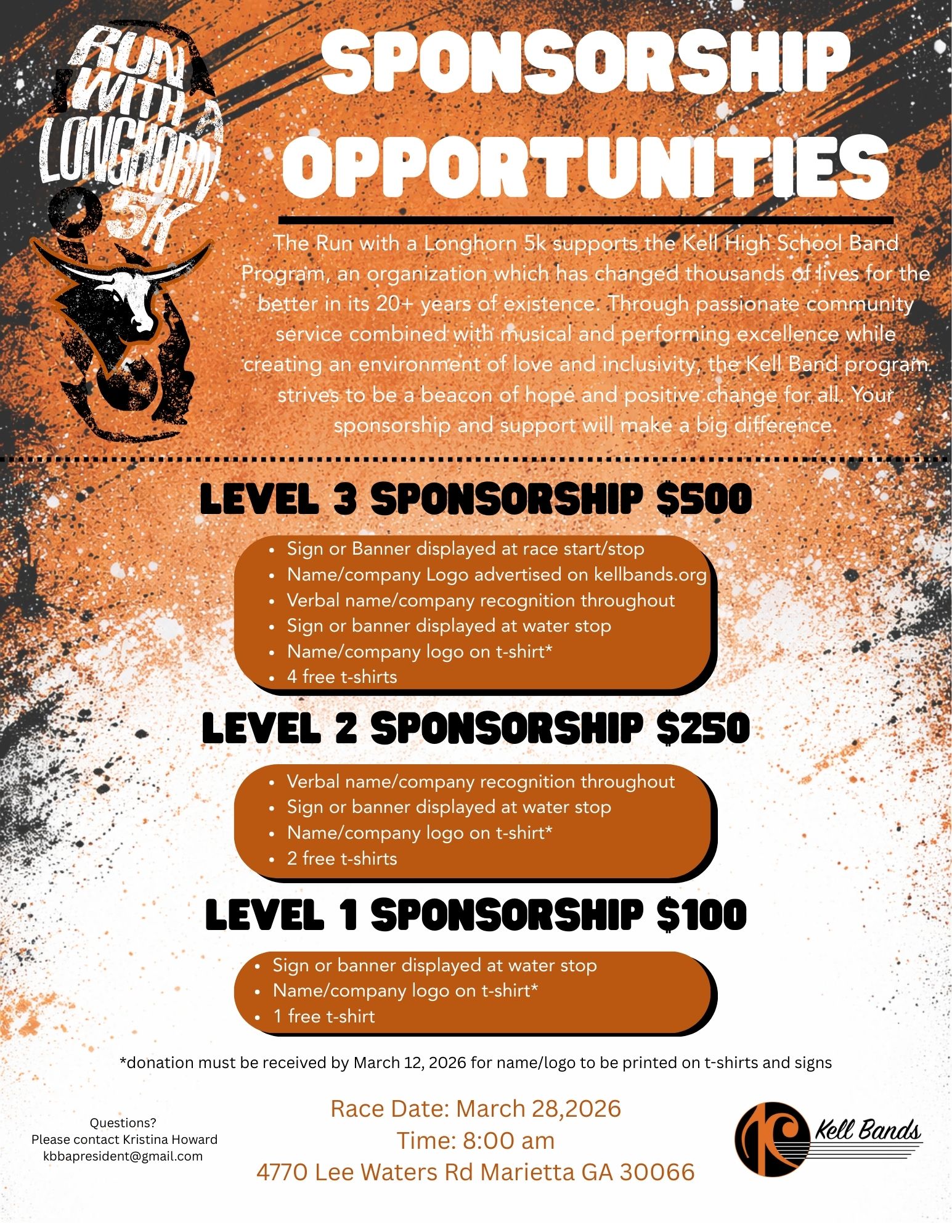 The Kell Band Booster Association Inc is a parent group whose purpose is to support the students involved in the Kell High School band programs and to facilitate activities of the students and the band. KBBA provides support to the band in a variety of ways ranging from chaperoning scheduled band activities to fundraising for student equipment, uniforms, trips, and activities.